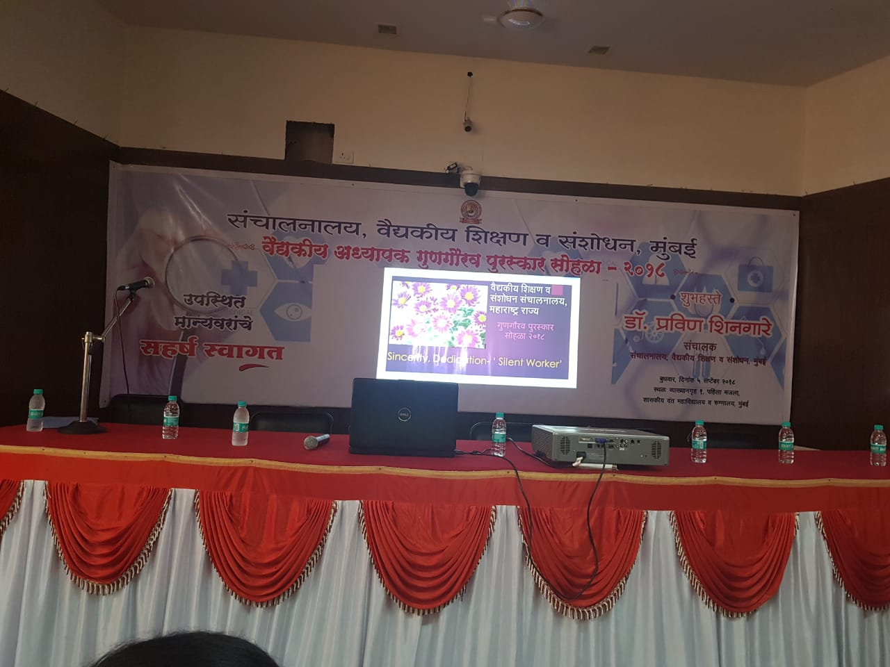 वैद्यकीय शिक्षण व संशोधन विभाग मुंबई येथे वैद्यकीय अध्यापक गुणगौरव पुरस्कार सोहळा दिनांक 05/09/2018 रोजी डॉ. प्रविण शिनगारे संचालक यांच्या अध्यक्षतेखाली पार पडला.